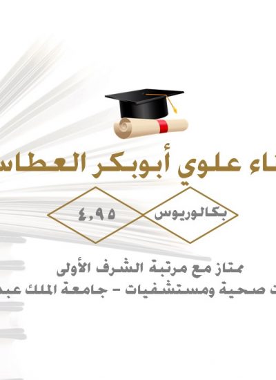 الدرجة العلمية : بكالوريوس التخصص : علوم إدارية الجهة التعليمية : جامعة الملك عبدالعزيز سنة التخصص : 2019-02-23ألف ألف مليون مبروك التخرج والحصول على درجة امتياز مع مرتبة الشرف ومزيدًا من النجاح والسّيرِ على درب التألّق. سدّد الله خطاكِ ووفقكِ.